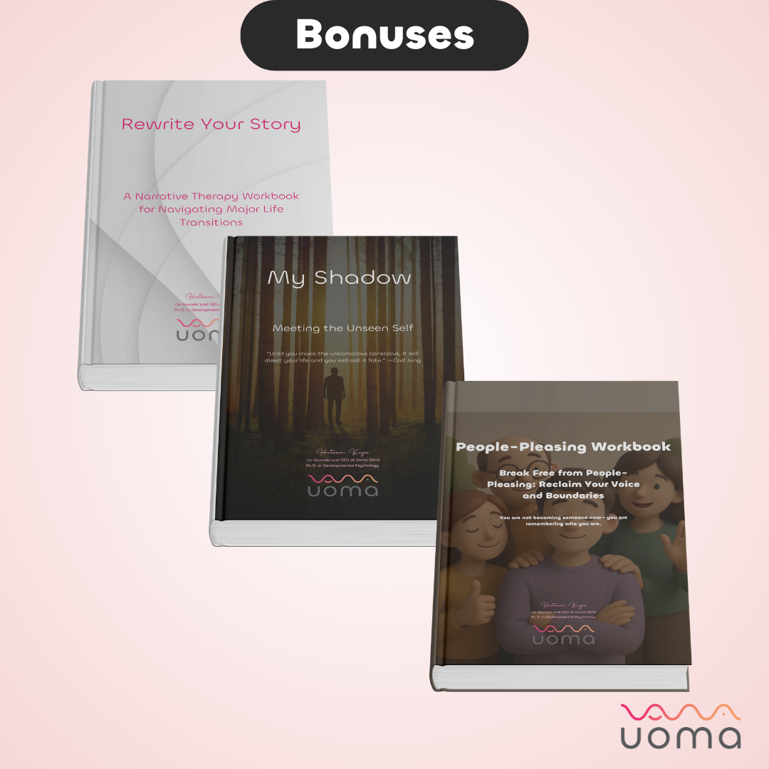 After payment, you’ll get instant confirmation, a download link for your workbook pack, and full access for a year to everything inside Uoma.